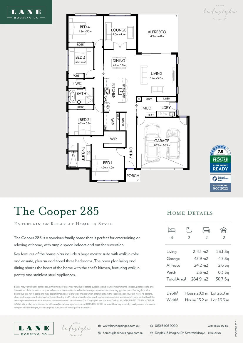 is designed to meet or exceed the NatHERS requirements for a 7.0 star energy rating, as well as being fully compliant with the latest National Construction Code specifications.