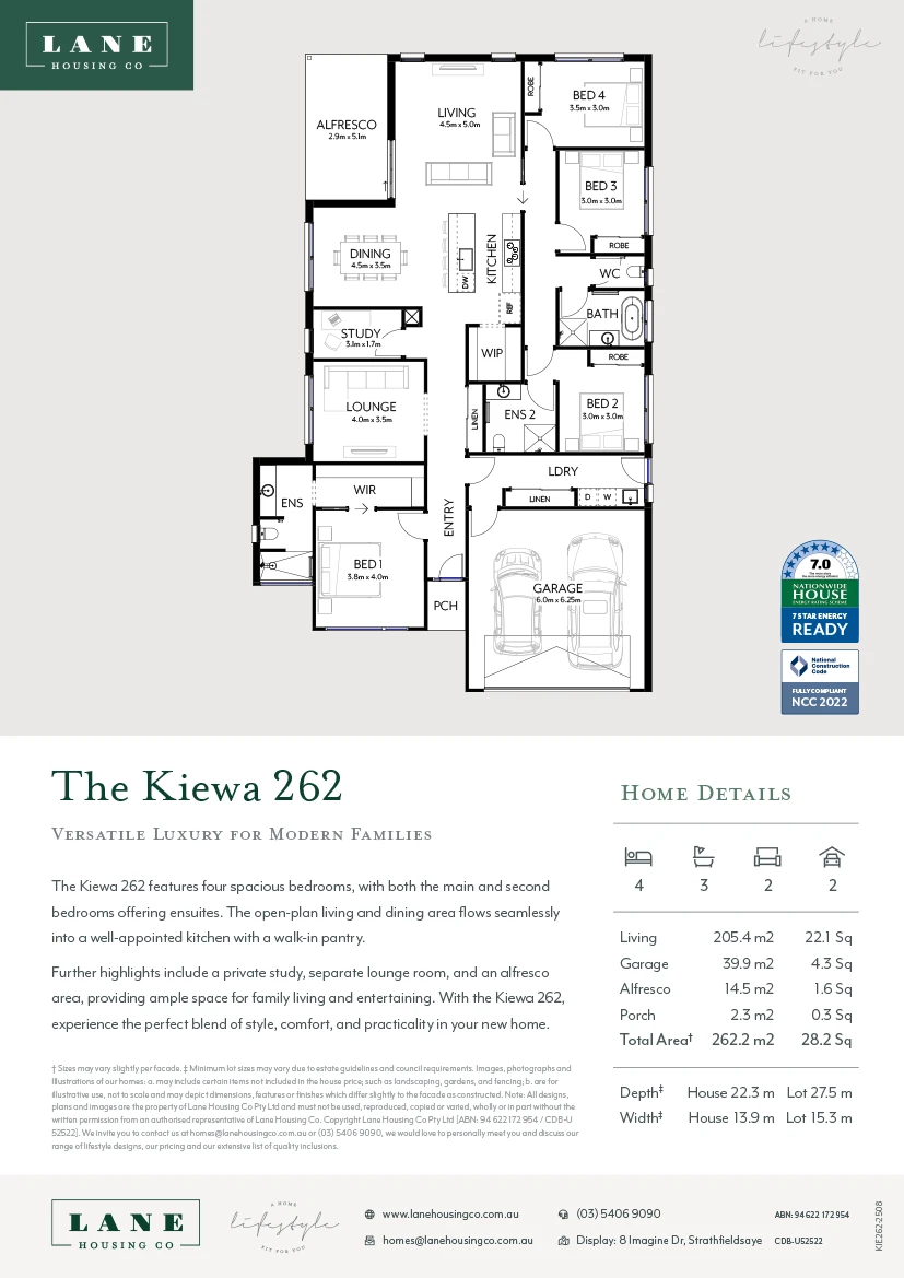 NOTE: Final NatHERS rating and NCC 2022 compliance requires certification of complete site-specific plans by an accredited energy rating specialist. Your home’s energy rating is influenced by the house plans, fit-out choices, and site location. This can include accounting for North orientation, placement of living areas, size and position of windows, site fall, engineering, and other site-specific overlays.