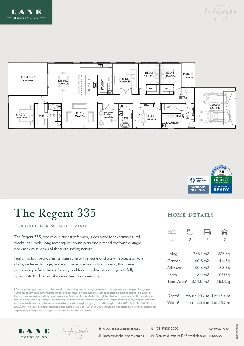 NOTE: Final NatHERS rating and NCC 2022 compliance requires certification of complete site-specific plans by an accredited energy rating specialist. Your home’s energy rating is influenced by the house plans, fit-out choices, and site location. This can include accounting for North orientation, placement of living areas, size and position of windows, site fall, engineering, and other site-specific overlays.